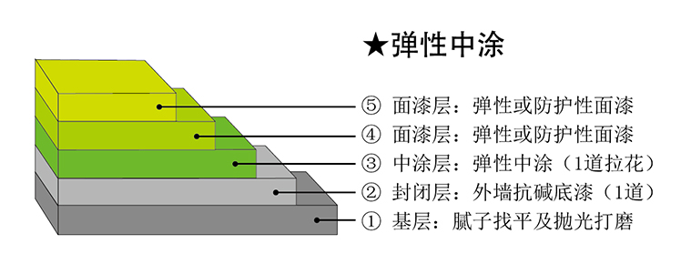 好雅麗彈性中涂專為彈性涂層中間增厚、抗裂增強而配置設計,為水性、厚漿型的純丙烯酸彈性樹脂乳膠體系。通過拉花獲得厚質彈性中間涂膜,與彈性面漆配伍形成強韌復層,是抑制水泥基材裂紋和應力的最佳彈性涂層系統(tǒng)的核心配伍產品。