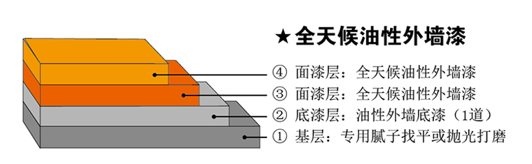好雅麗全天候油性外墻漆為單組份、常溫自干、無(wú)苯環(huán)保型的溶劑性涂料。涂膜強(qiáng)韌,具有耐候保護(hù)色、耐酸抗堿、強(qiáng)效砼基和鋼基面附著力、抗污可自潔的全面特性。尤其突出抗沾污性,適用于有高耐久的保色、保潔性外墻涂裝。
