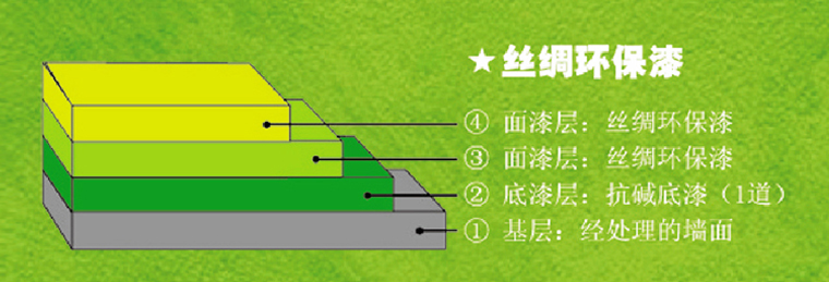 一縷幽香、一壺好茶,幾個好友:一道柔光、一面粉墻的絲絲淡雅;柔滑如絲,嬌柔并蓄是絲綢環(huán)保漆的文化內(nèi)涵。漆膜細(xì)膩、附著力強(qiáng)、耐擦洗大于10000次、遮蓋力好,抗堿、質(zhì)感渾厚、經(jīng)久耐用是絲綢環(huán)保漆的品質(zhì)保證。淡淡清香,超低VOC,是絲綢環(huán)保漆的環(huán)保承諾。