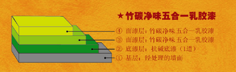 好雅麗竹碳凈味五合一內(nèi)墻乳膠漆為您提供更強(qiáng)大的墻面保護(hù)功能。其配方除了進(jìn)一步加強(qiáng)耐擦洗、抗堿防霉、覆蓋細(xì)微裂紋、防水和清新環(huán)保五大功能外,還特別添加了竹碳因子、抗菌劑,能有效抵御有害細(xì)菌對(duì)您家人的侵害。精選優(yōu)質(zhì)的原料,運(yùn)用獨(dú)特的提純工藝,大大降低有害雜質(zhì)及其帶來(lái)的氣味,達(dá)到快速凈味效果。,使用竹碳凈味五合一乳膠漆可讓您長(zhǎng)久擁有一個(gè)健康、美麗的家居環(huán)境。