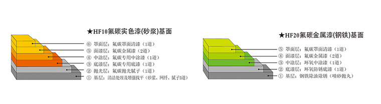 好雅麗HF10(實(shí)色)、HF20(金屬)氟碳金屬漆是采用交聯(lián)基氟碳樹(shù)脂為成膜基質(zhì)的標(biāo)準(zhǔn)型氟碳涂料體系(溶劑型、雙組份);于常溫下具有優(yōu)異交聯(lián)固化的特性,可獲得長(zhǎng)效耐候保色、耐酸抗堿、耐鹽霧、抗UV老化、抗沾污自潔的高強(qiáng)性涂膜,于建筑外墻、鋼構(gòu)飾面涂裝后可經(jīng)受苛刻環(huán)境考驗(yàn),起到超長(zhǎng)效的防護(hù)和裝飾作用。